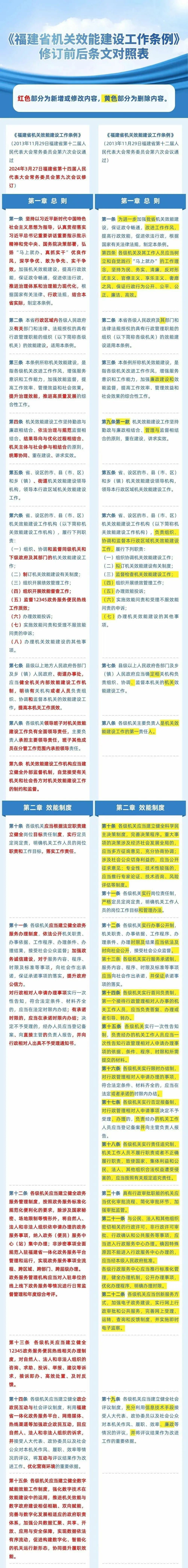 《福建省机关效能建设工作条例》修订前后条文对照表