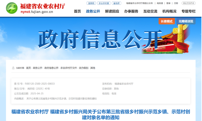 为贯彻农业农村部、国家乡村振兴局“百县千乡万村”乡村振兴示范创建要求,落实我省《关于开展“千村示范引领、万村共富共美”工程走具有福建特色乡村振兴之路的实施意见》,省农业农村厅、乡村振兴局组织开展第三批省级乡村振兴示范乡镇、示范村创建对象遴选工作。经县级申报、市级审核推荐、省级评审确定和公示,将福州市福清市海口镇等40个单位纳入第三批省级乡村振兴示范乡镇创建对象名单、福州市福清市宏路街道周店村等500个单位纳入第三批省级乡村振兴示范村创建对象名单,现予公布。