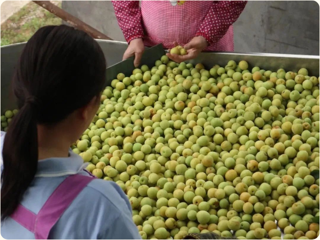 5月青梅丰收季,位于永泰葛岭镇台口村的梅百华文化创意园车间内一派繁忙。另一头,青梅加工厂二期项目建设同样火热。