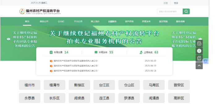 依托市级服务中心,福州还打造了一站式公开流转平台——福州农村产权流转平台,实现信息登记、流转交易、融资贷款全程线上办理,大幅提升交易效率,并引入公开竞价机制,实现竞拍、交易进程的实时监测,形成全过程轨迹监督。