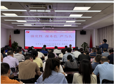 局党组成员、驻局纪检监察组长周建国以《强党性 保本色 严当头》为题,为党员干部讲授深入贯彻中央八项规定精神学习教育专题党课。他结合自身学习思考和工作经历,紧密联系农业农村工作实际,从政治高度、实践维度、纪律尺度系统解读中央八项规定及其实施细则精神核心要义。通过基层项目闲置、平台虚设、集体租金拖欠等典型案例,深刻剖析了基层干部作风不严不实、制度机制不健全、担当作为不足等问题,强调“小切口”背后的政治危害。教育引导党员干部要不断加深加固对作风问题本质和核心的认识、对作风建设实践要求的认识,把中央八项规定精神内化于心、外化于行。