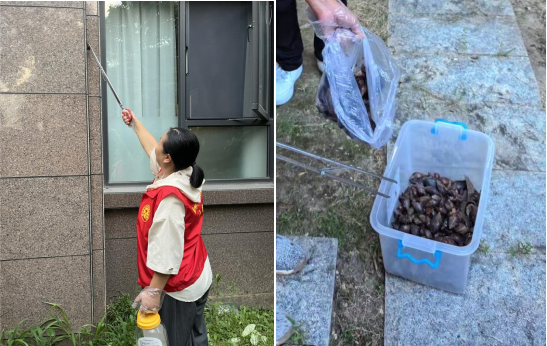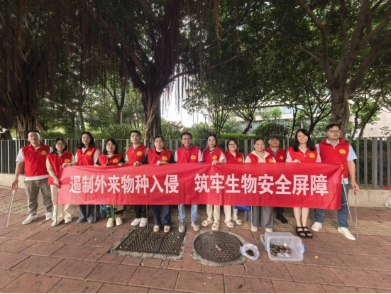 组织本单位10余名志愿者在东部办公区、祥浦苑小区等区域开展清除非洲大蜗牛志愿服务行动,志愿者配备手套、长柄捕虫夹,重点针对绿地、苗圃、墙角、下水道周边等非洲大蜗牛易藏匿区域实施地毯式搜索清理,并对捕获的非洲大蜗牛实施无害化处理。