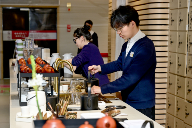 福建春伦集团副总裁兼国际部部长傅晓萍告诉记者,他们特意在东百中心选择了一个能够俯瞰整个三坊七巷的点位开设了一家名为“ITEAMO”的门店。空间设计巧妙融入禅茶、国潮元素,推动中式传统泡茶法与冷泡、虹吸萃茶等西式工艺相碰撞。其中,他们以福州茉莉花茶打底,加上了接骨木、玫瑰海盐等,特调一款“茉莉香槟”,深受消费者喜爱。