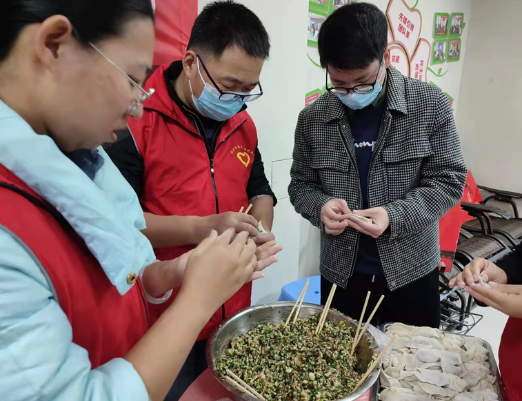 在一阵紧张而有序的忙碌后,一盘盘热气腾腾的饺子和汤圆出锅了,大家尝着亲手做的汤圆水饺,带着刚出锅的饺子和汤圆,来到社区花园中心广场上,给社区老人们送上冬日里的一份温暖。