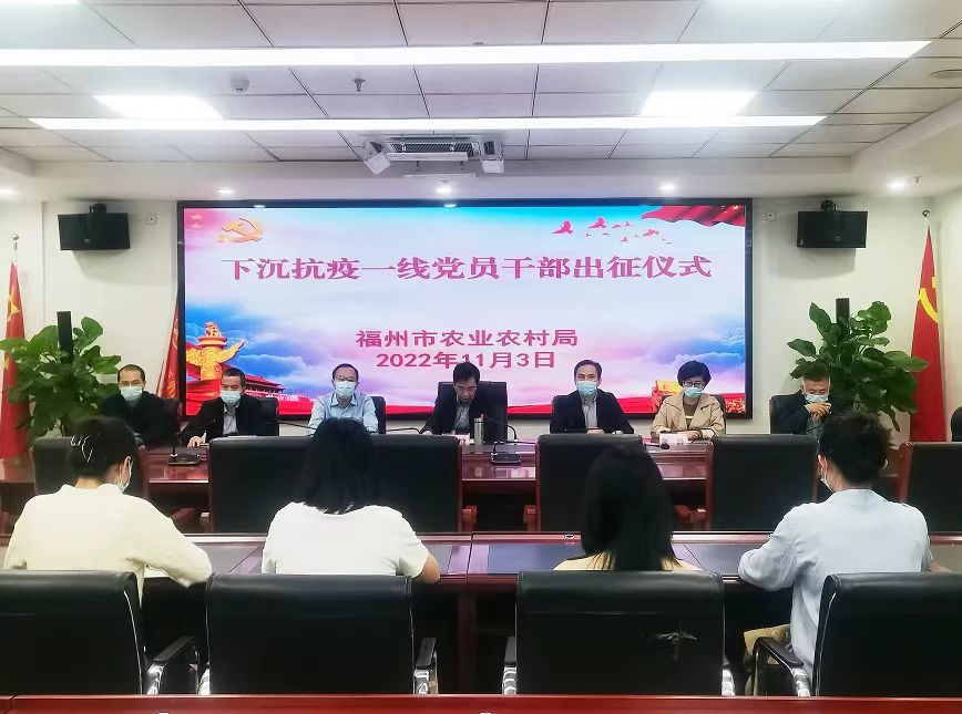 为落实党中央和省、市委疫情防控决策部署,进一步号召广大党员干部众志成城,共克时艰,坚决打赢疫情防控阻击战歼灭战,让党旗高高飘扬在防疫前线。11月3日下午,福州市农业农村局隆重举行下沉闽侯县抗疫党员干部先锋队授旗出征仪式,派出75名党员干部支援闽侯县祥谦镇疫情防控工作,用实际行动彰显党员本色和“三农”干部的使命担当。局党组书记、局长林健主持出征仪式并讲话,局领导班子,机关各处室、各直属单位下沉抗疫一线党员干部参加仪式。